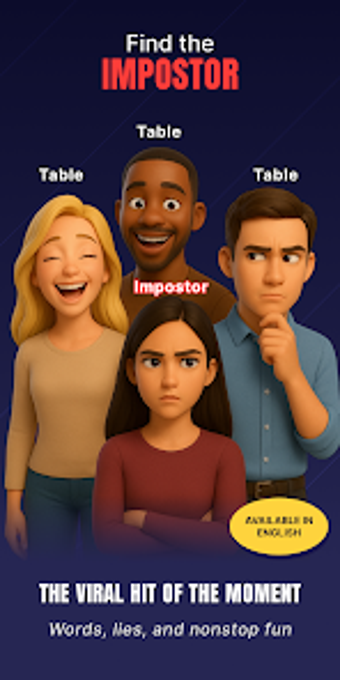 Find the Impostor, sosyal bir dedektiflik ve kelime tahmin oyunu olarak öne çıkıyor. Bu oyun, bir oyuncunun gizli kelimeyi bilmeden "İmpostor" kelimesini gördüğü ve diğer oyuncuların ipuçlarıyla bu kişiyi tespit etmeye çalıştığı bir yapıya sahip. Oyun, 3 ila 20 oyuncunun tek bir cihazda oynamasına olanak tanırken, her turda oyuncuların strateji geliştirmesi ve diğerlerini yanıltması gerekiyor. Farklı kategorilerde yüzlerce gizli kelime ve özelleştirilebilir kategoriler ile oyun deneyimi sürekli taze tutuluyor.